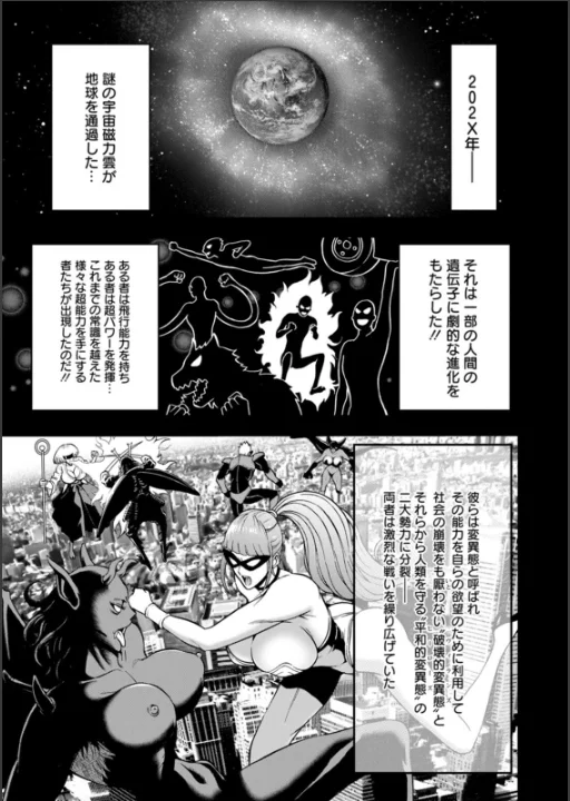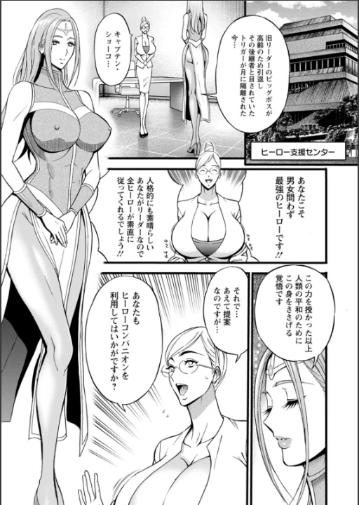 大好評を博した前作『ヒーローヌキヌキ隊 アヘんじゃーズ』の強力姉妹編が登場!! 202X年、世界は「平和的変異体」(ヒーローズ)と破壊的変異体(ヴィランズ)が熾烈な戦いを繰り広げていた。 単なるドスケベヘンタイ青年・本郷剛(つよし)は、人類のためにカラダを張る女性ヒーローたちを性的に癒すための施設(女風?)でヒーローコンパニオンになることを志願、並外れた爆乳ボディたちを相手にエッチなご奉仕をしまくることになるが…