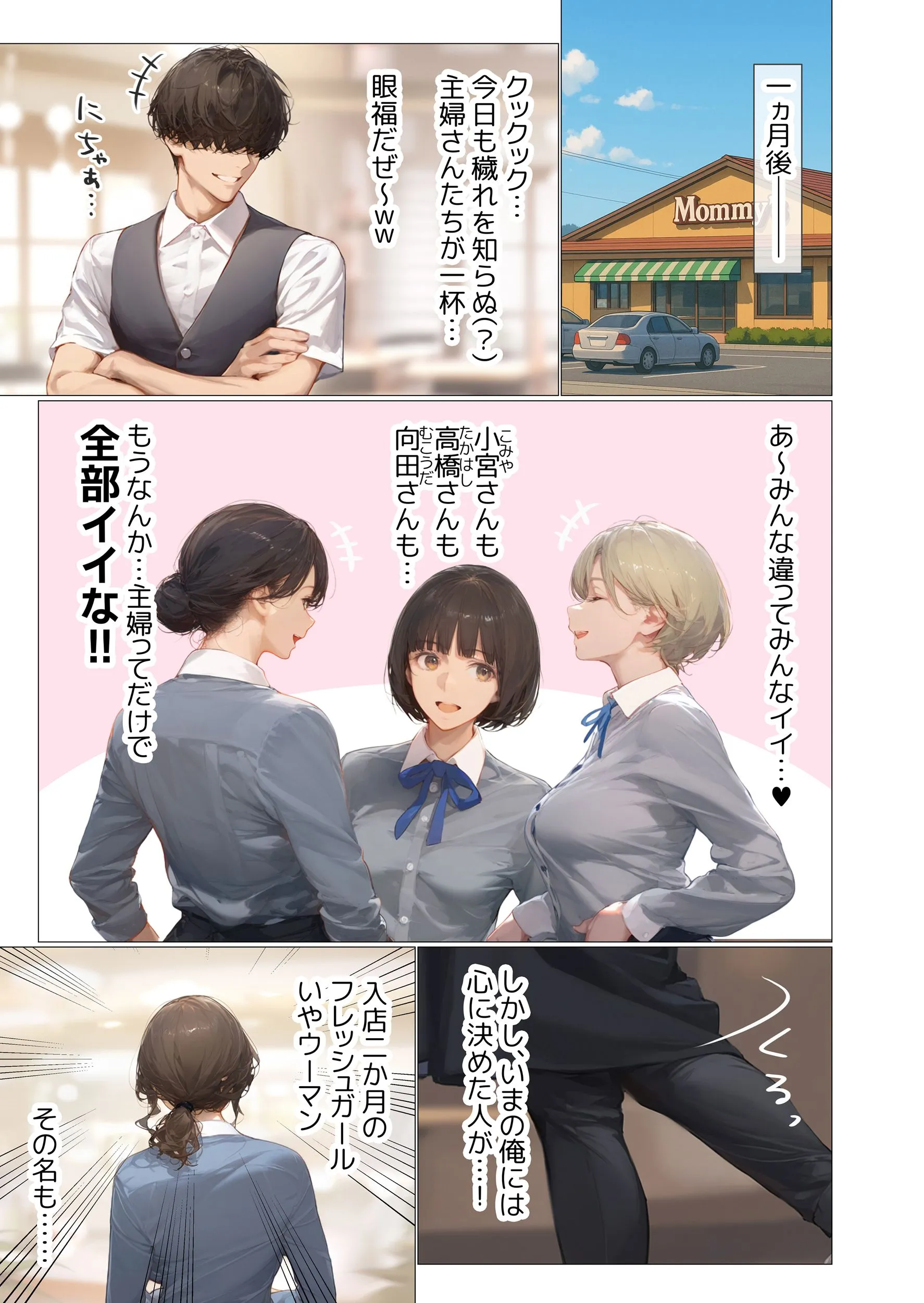 大学卒業後、主婦とヤるためだけに就職もせず主婦が居そうなバイトを転々とするフリーター・春人。ファミレスで働く同僚の里美、そして幸恵をターゲットに、手練手管を駆使して不倫セックスの悦びに開花させていく。
