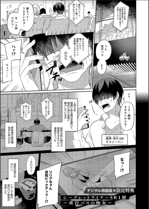 「ドコ見てるの、えっち」超密着トレーニングで誘惑したり、友達以上の関係になりたくてもちふわ巨乳をチラ見せしたり、超きわどい下着で視線を独り占めしたり、えっちないたずらを仕掛けて挑発してきたり…。アナタを本気にさせたいからあざとくて、いじらしい♪小悪魔系カノジョたちの胸キュン商業作に加え、大人気同人シリーズ『美容師さんは僕指名?』なども収録!メロかわ作家・イトハナが贈る愛しさ満開♪あざとさ満点な初単行本★さらに、デジタル特装版には、夜行バスでドスケベな女の子に襲われちゃう同人作品2作品を大ボリューム合計64P追加収録♪[収録作品]『筋肉勝負しませんか』友達の家を尋ねたナベは、友達が留守なのでその妹・仁菜(にな)とゲームをして遊ぶことに!トレーニングのゲームで遊ぶ仁菜は、動く度にぷるんっと巨乳を揺らしていて、ナベのチンイラ不可避!さらに、追い討ちをかけるように、仁菜は動きやすい服に着替えると言って、露出度の高いぴっちりなフィットネスウェア姿になって!?しかも、ゲームで負けたリベンジにナベの股間に「こっちで対戦しますか?」とダイレクトアタックを仕掛けてきて…♪『幼馴染の胸がデカい件について』ボーイッシュだった幼馴染・アキが、まさかのデカパイ美少女に!?ずっと友達だと思ってたけど、その特大級な胸を無防備に晒されたら、女だって意識しちまう…!我慢していたのに「いいよ触っても」なんて言われたら、おっぱいに飛び込むしかないだろ!ふわふわで蕩けそうなパイズリに、騎乗位での生ハメ…もう友達だと思えないとこまでイッちゃって♪『秘め事キャンプ』親同士の仲が良いという理由でキャンプに来た幼馴染の栄太(えいた)と葵衣(あおい)。しかし、あまり仲の良くない二人はキャンプでもギクシャクして、栄太はうっかり葵衣に水をかけてしまう!彼女の透けブラを見てしまった栄太は、たわわなおっぱいが頭から離れなくなって!?そのことを見透かしていた葵衣は、「勃起してたでしょ」と栄太に詰め寄り寸止め手コキでいじり倒し★『隣のえっちなギャル子ちゃん』隣の席のギャルJK・羽海野彩羽(うみのあやは)は、いつもエッチな挑発をしてきて僕を困らせてくる!わざとブラチラやパンチラを見せつけ、童貞の僕をからかって楽しんでいるのだ…!ある日、僕が後輩の女の子に告白されている姿を目撃した彩羽は、ショックを受けた様子でその場を後にして…。困惑しながらも追いかける僕に、感情を爆発させた彩羽は突然キスをしてきて!?『コスプレイヤー先輩の秘密っ!』友達のお使いで一般参加したイベントで出会ったのは、きわどいコスプレ姿で売り子をしている同じ大学の七崎先輩だった!しかもバイブをま○こに突っ込みながら頒布していて、ドスケベすぎる先輩の痴態に俺のチ○ポはフル勃起!そんな彼女にアフターに誘われ、コスプレ姿でえっちを迫られ――♪『美容師さんは僕指名?』いつも通っている美容室の担当・綾乃さんは、俺をからかうのが大好きな巨乳いたずら好きお姉さん♪今日こそはやり返してやると意気込んだ俺は「綾乃さん似の子にご飯に誘われて」と鎌をかけるも、華麗にスルー!しかも、たぷたぷなおっぱいを当ててきたり、股間を優しく撫でてきたりとからかいが過激に…。綾乃さんのいたずらは、ついにセックスまで発展しちゃって!?『先輩!もっと俺にご褒美ください!』同じ部活の後輩・藤原くんの勉強を見ていたら「おっぱい見せてください!!」と懇願されて!?集中力が足りないのはオナニーしていないからだと嘆く彼の様子に、私は仕方なく胸を見せることに…。しかし、見せるだけのはずがおっぱいを揉みしだかれ、さらにとろとろになってしまったアソコにまで手を出されて!?初めてなのに気持ちよくなっていく私は、どんどんエッチにハマってイキ♪[デジタル特装版]『シークレットライナーSR1便〜夜行バスの痴女〜』実家の帰省で夜行バスに乗ることになった俺は、何故か自分の推しキャラ・リリアに似ている女の子の隣りに!?さらに、その子は乳首もモロ出しの無防備な状態で眠っていて…!オカズにするだけなら…とこっそりオナニーをしていると、その子が起きてしまった!『シークレットライナーSR2便〜夜行バスの痴女〜』彼女・千夏と一緒に夜行バスに乗る俺は、車内に響く喘ぎ声のせいでち○ぽがギンギンに!でも、千夏は一度寝ると些細なことでは起きない上に、エッチには消極的で頼れそうにない…。仕方なくおっぱじめているカップルの喘ぎ声でヌいていると…デカパイの地雷系女子がこっちを見つめてきて!?彼女がいるのに…でも、目の前の誘惑からは逃れられない!