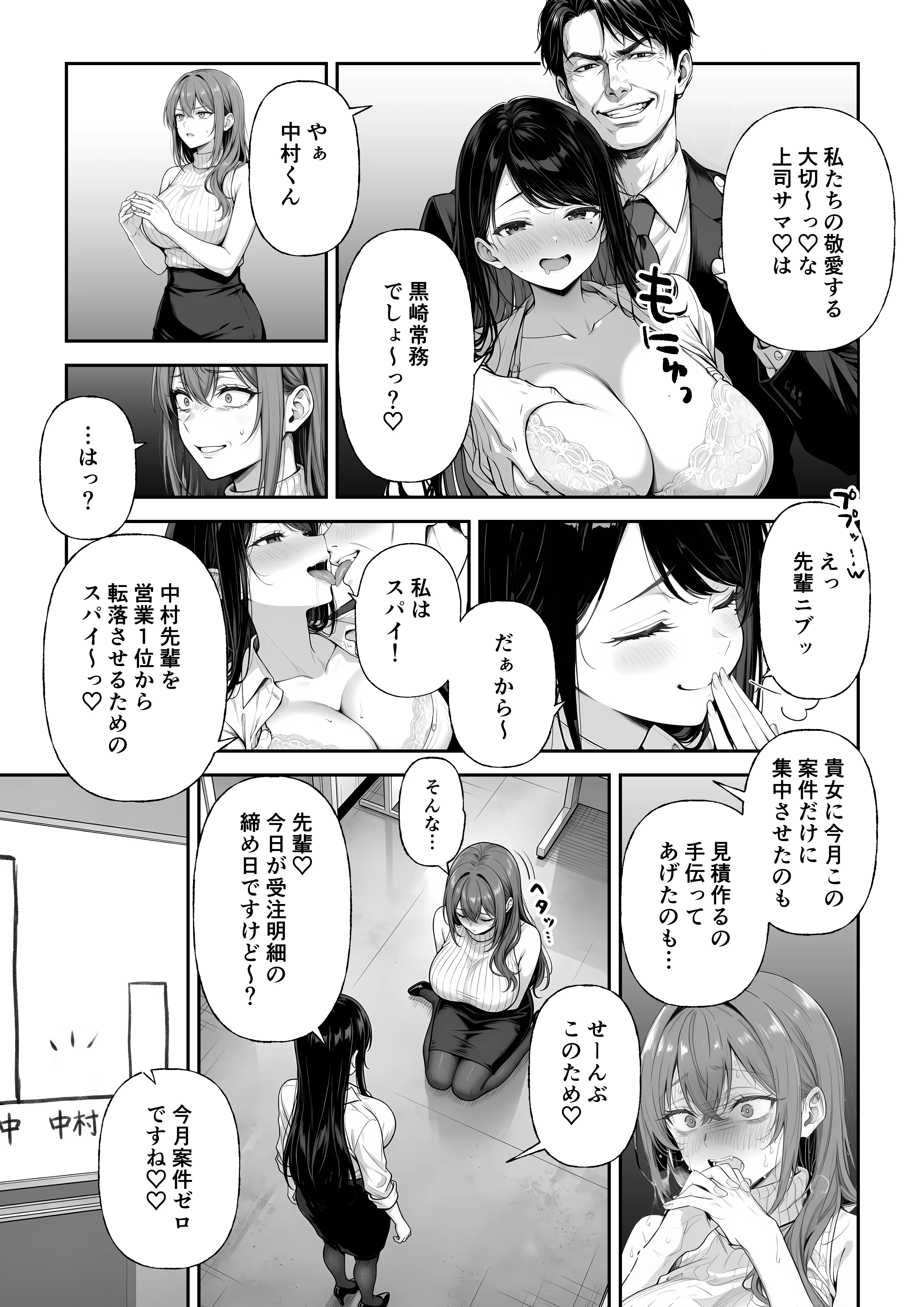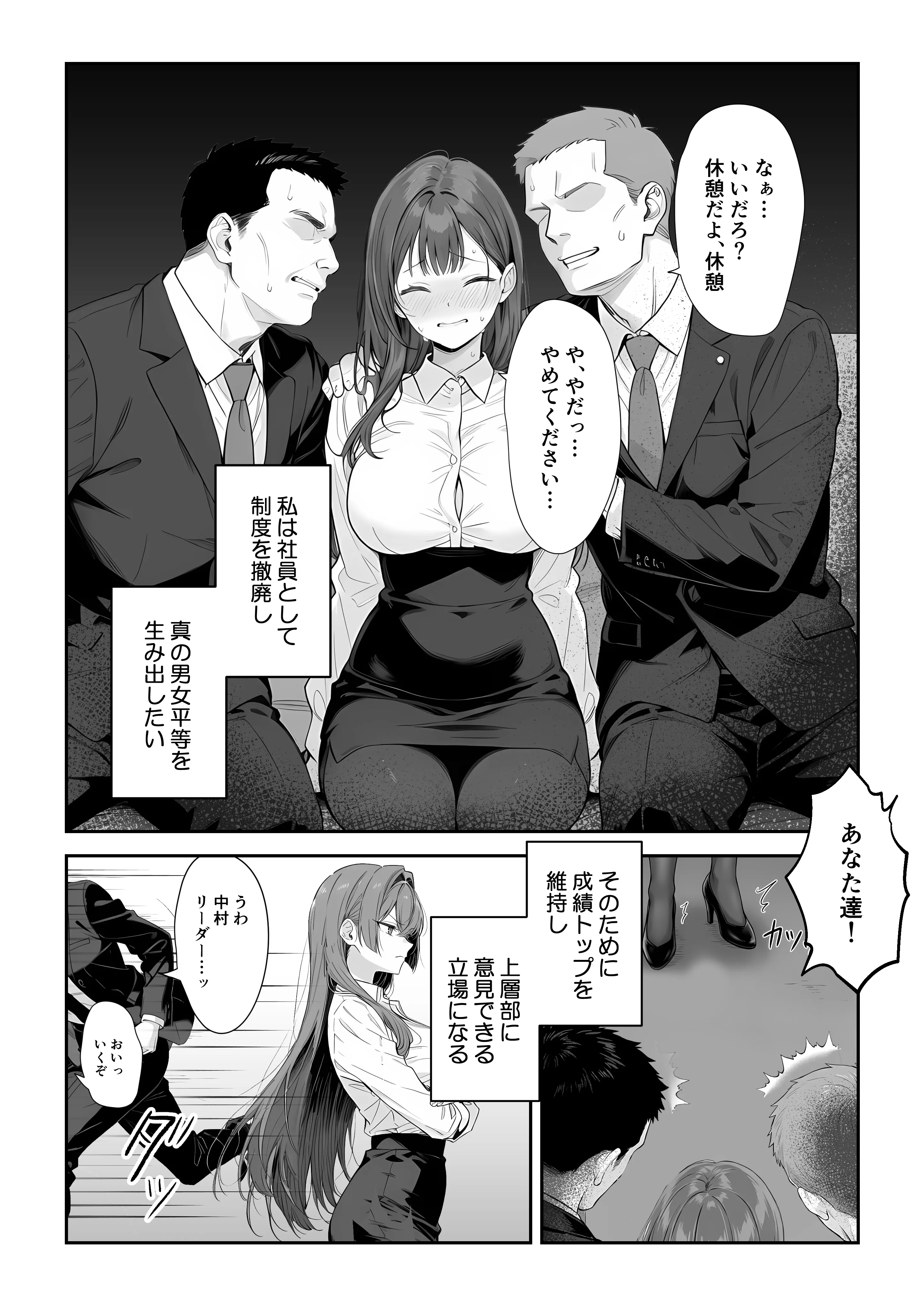 営業成績トップの「中村真奈」は、営業成績最下位が性処理係になる裏ルールに反対していた。