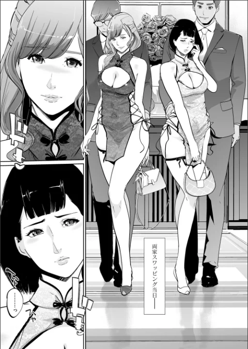 百子は義理の息子の祐介との禁断の関係を偶然、旧友の万由子に知られてしまう。一方、万由子もまた、彼女の娘婿の悦史と愛し合う仲なことを百子に告白し、見せつけるように百子の目の前で行為に及んだ。後日、期せずして同じ秘密を共有した義母と義息子達は両家スワッピングを敢行することに。不安げな百子をよそに万由子は祐介に抱きつき唇を交わし舌を絡め合う──。
