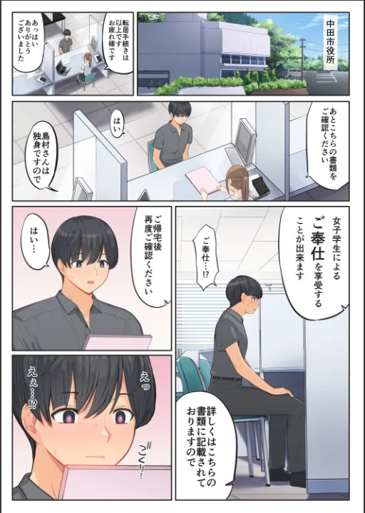※※本作品の漫画部分は同人誌として発行された物と同じ内容です※※少子化が進む現代社会…とある田舎では子作り支援の施策として『ご奉仕活動』を行っている。主な活動内容は、女子学生らが独身男性の自宅へ赴き、性欲処理を支援しているらしい。新米教師の島村拓哉は、その施策を実施している聖女子校に赴任することになるのだが…。さらに電子版限定でノンクレジット表紙を収録!体操着からハミ出すピンクパンツとむっちりでか尻をご堪能ください♪